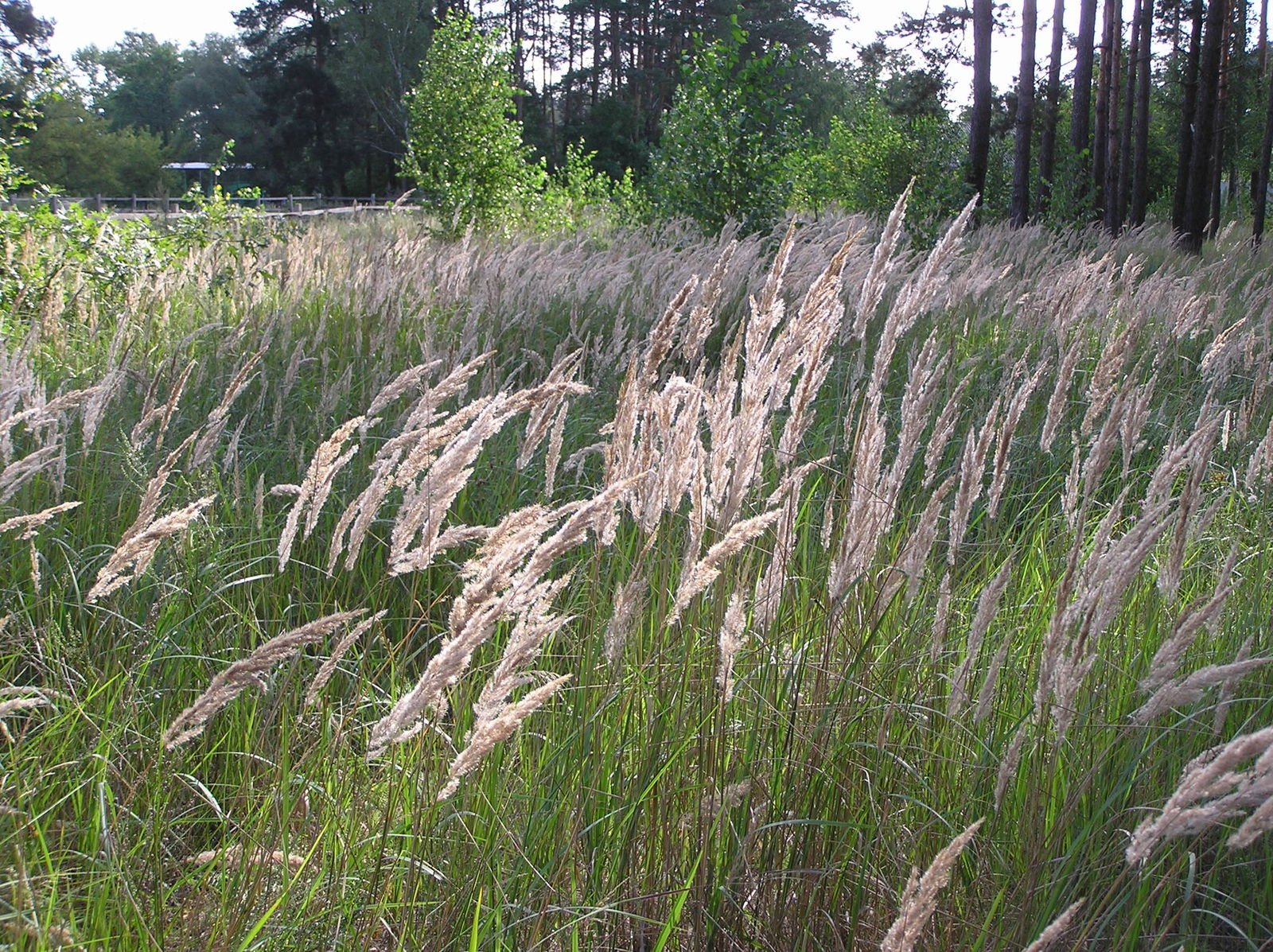 A tall, clump-forming perennial grass with upright stems and narrow green leaves. In summer, it produces airy, plume-like flower heads that mature from soft purplish tones to golden brown. Calamagrostis epigejos can reach heights of 1â2m, creating a striking vertical feature.
