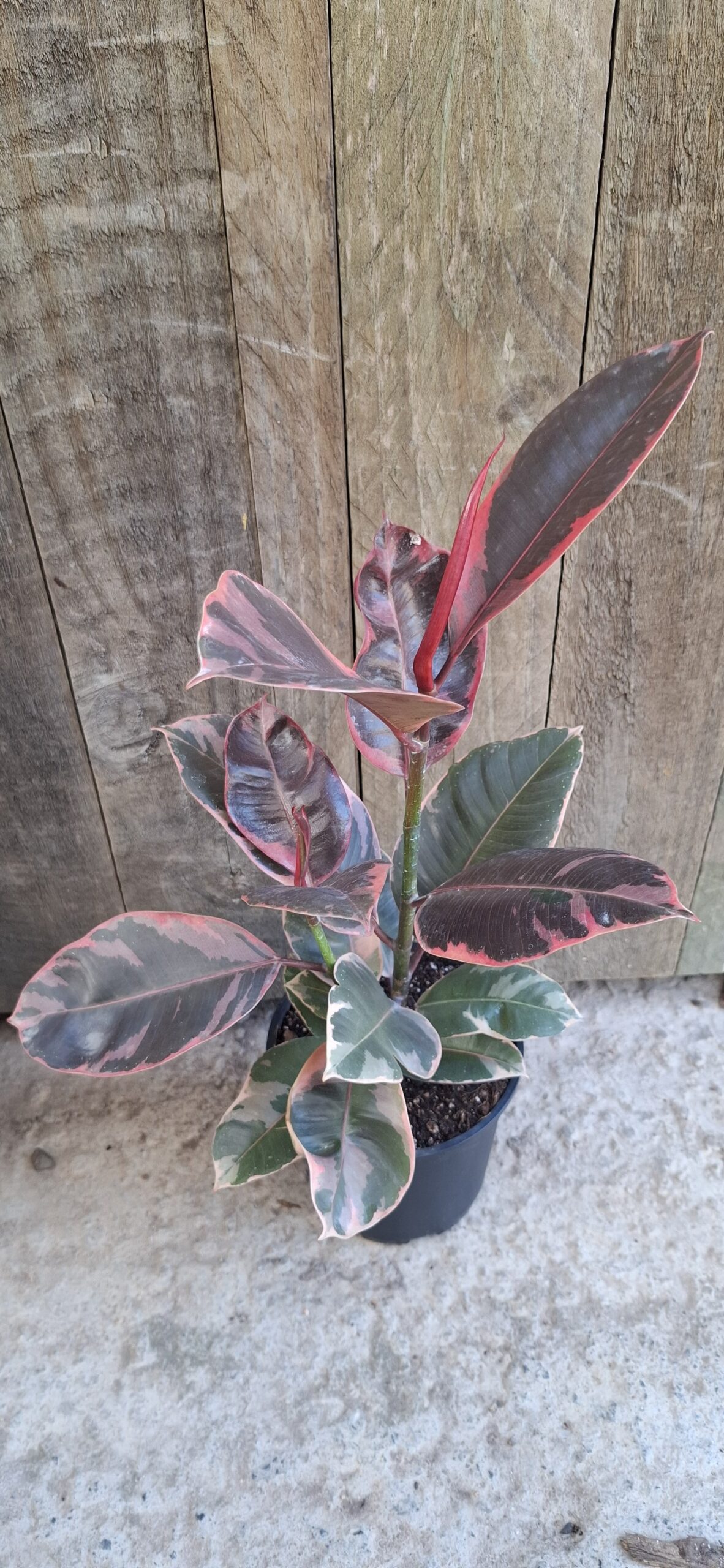 Add a splash of colour to your indoor garden with the Ficus elastica ‘Ruby’. Its striking leaves showcase shades of pink, cream, and green, bringing vibrancy and elegance to any space. Compact, hardy, and low-maintenance, it’s perfect for shelves, desks, or living areas.